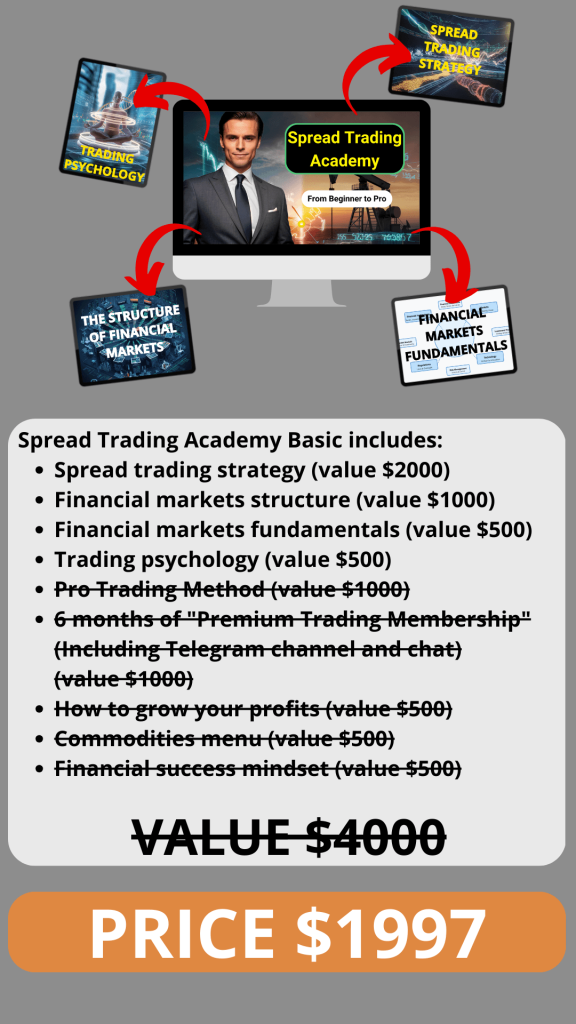 The Essential Spread Trading Strategy ($2,000) A system that shows you how to generate consistent profits even with limited initial capital. With $10,000 capital, by correctly applying this system, my students typically generate between $800 and $1,200 per month. In just two months, you’ve already recovered your investment in the course.
